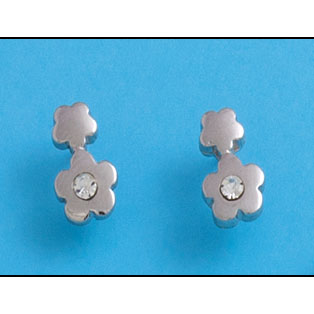Pendientes de flor en Plata de Ley de 925mm con circonitas. Cierre de presión. Medidas del pendiente: 8x12mm. Marca Lucarelli Joyas