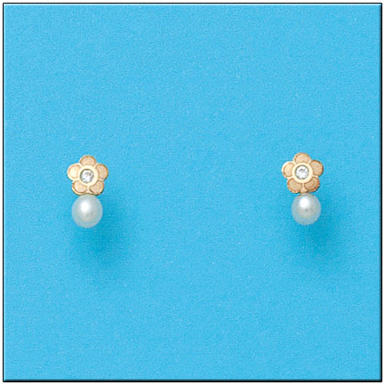 Pendientes de flor en Oro de 18 Kl. con circonitas y perlas. Cierre de rosca. Medidas del pendiente: 4x7mm. Marca Lucarelli Joyas.