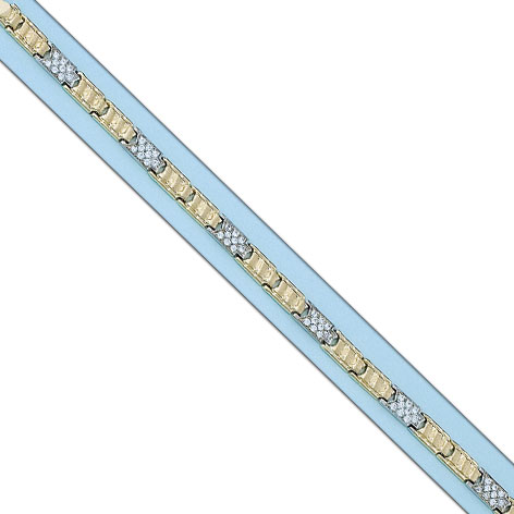 Pulsera bicolor en oro de 18 Kl. con Circonitas. Ancho de 5mm. Largo de 19 cm. Marca Lucarelli Joyas.